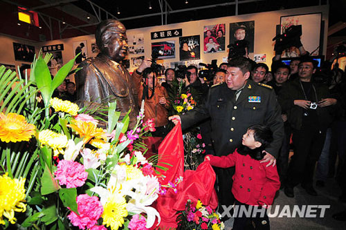 11月23日,毛岸青的兒子毛新宇、孫子毛東東在毛岸青紀(jì)念館開館儀式上為毛岸青夫人邵華將軍的銅像揭幕。