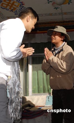 11月28日下午,王菲、李亞鵬來到拉薩城關(guān)區(qū)當(dāng)巴居委會,看望一歲的唇腭裂患兒小央金,并為小央金送去慰問金和禮物。首次做客藏家的王菲、李亞鵬夫婦顯得很愉快。中新社發(fā) 龍昊 攝