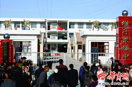 家長們在堆子梁鎮(zhèn)中學外