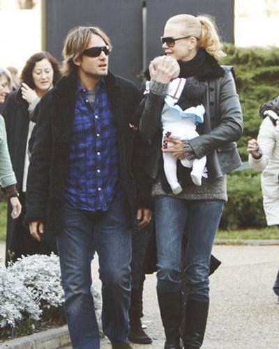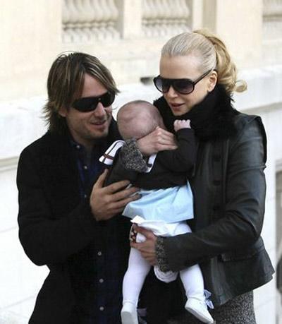 組圖:妮可扁嘴逗愛(ài)女 一家三口幸福出游