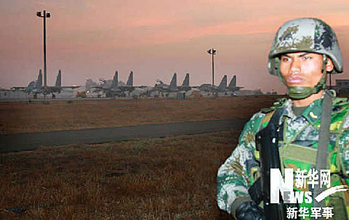 我們的IL-76運(yùn)輸機(jī)就停在這些蘇-30戰(zhàn)斗機(jī)旁邊。新華軍事記者 李剛 攝