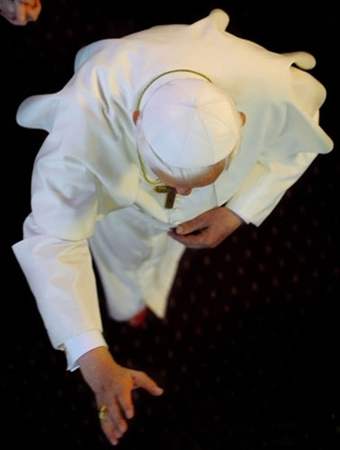 2008年7月17日,羅馬教皇本篤十六世在澳大利亞悉尼離開瑪麗-麥姬洛紀(jì)念教堂時(shí)替信徒祈福。