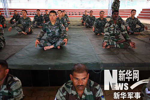 擔(dān)負(fù)警戒任務(wù)的印方參訓(xùn)軍人。新華社記者 李剛 攝