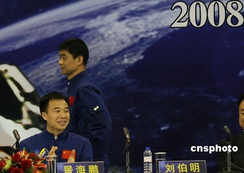 圖為中國航天員劉伯明與景海鵬在報告會上。