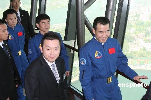 十二月九日,“神舟七號(hào)”載人航天飛行代表團(tuán)在澳門(mén)參觀旅游塔,飽覽澳門(mén)美景。