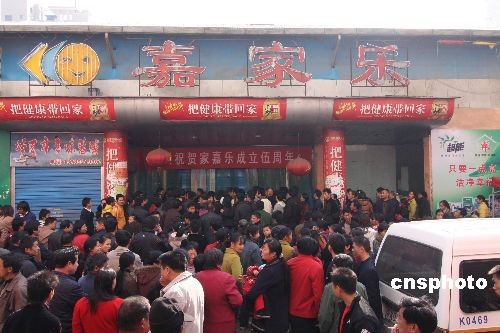 12月10日,湖南省婁底市民營市場嘉家樂超市遭數(shù)百群眾哄搶后吸引許多人圍觀。