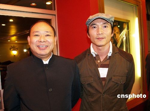 圖為左起張倫導(dǎo)演與好萊塢武打明星鄒兆龍?jiān)谑子呈缴。中新社發(fā) 盧威 攝