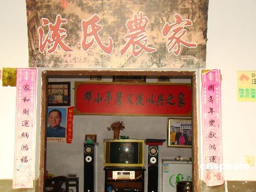 改革開放三十年來,中國改革開放總設計師鄧小平故里四川廣安牌坊村發(fā)生了巨大變化。牌坊村黨支部書記鄧治君說,目前牌坊村正在成為集教育、觀光、會議、休閑為一體的紅色旅游與現(xiàn)代農(nóng)業(yè)旅游基地。圖為鄧小平舅父談以興家開設的農(nóng)家樂,名為“淡氏農(nóng)家”。中新社發(fā) 王萌 攝