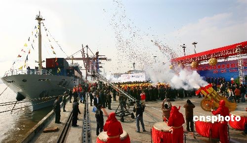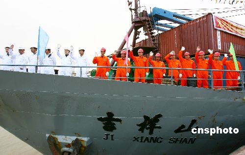 12月15日上午,由福建省人民政府、國(guó)臺(tái)辦、交通運(yùn)輸部共同舉辦的海峽兩岸海上直航福州港首航儀式在福州港青州港區(qū)舉行。據(jù)悉,當(dāng)日,福建全省沿海首航的有10艘船舶,分別從福州港、廈門港、泉州港開往高雄港、基隆港、臺(tái)北港、臺(tái)中港、布袋港。由福州港開出的共有4艘船舶分別為:華航3號(hào)、吉祥山號(hào)、金海緣號(hào)、興華號(hào)。據(jù)了解,福建省政府、國(guó)臺(tái)辦、交通運(yùn)輸部、福州市領(lǐng)導(dǎo)和福建省直有關(guān)部門、福州市直有關(guān)部門、口岸聯(lián)檢各單位的領(lǐng)導(dǎo),以及首航船公司、碼頭公司、從事試點(diǎn)直航、兩岸三地彎靠及“小三通”客貨船公司的代表、臺(tái)灣船公司及駐榕辦事處代表等共500多人參加了首航儀式。