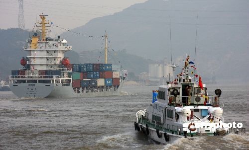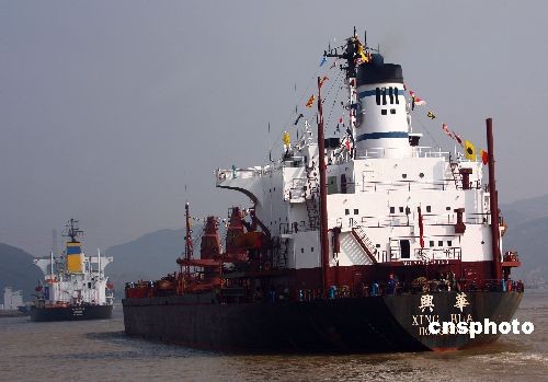 由福州港開出的共有4艘船舶分別為:華航3號(hào)、吉祥山號(hào)、金海緣號(hào)、興華號(hào)。中新社發(fā) 祝敏松 攝