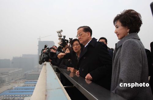 12月20日,中國國民黨榮譽主席連戰(zhàn)一行訪問上海世博局并俯瞰正在建設(shè)中的世博場館。中新社發(fā) 潘索菲 攝