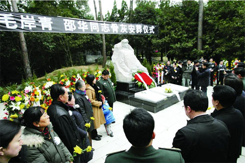 經(jīng)中央批準(zhǔn),毛岸青、邵華同志骨灰昨日(21日)下午由北京遷葬楊開慧烈士陵園,永遠(yuǎn)地留在了媽媽楊開慧烈士的身邊。“親愛的爸爸媽媽,今天我和妻子劉濱以及你們的孫子?xùn)|東,終于把你們送到了開慧奶奶的身邊,實(shí)現(xiàn)了你們的遺愿!”在骨灰安葬儀式上,毛岸青、邵華的兒子毛新宇動情地說。省委書記、省人大常委會主任張春賢,省委副書記、省長周強(qiáng)向毛岸青、邵華同志敬獻(xiàn)了花籃。