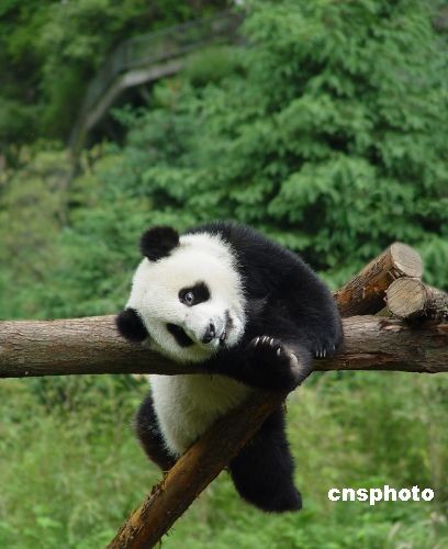 2005年5月27日拍攝的圓圓,爬上樹枝蕩秋千。中新社發(fā) 衡毅 攝