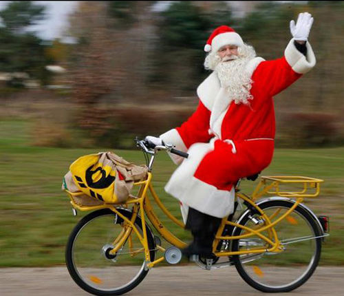 在德國(guó)勃蘭登堡,圣誕老人騎著自行車奔赴郵局。