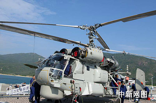 艦載某型直升機出征前準備。