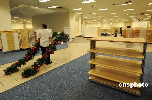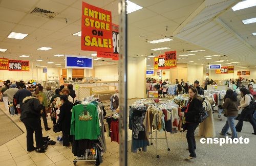 當(dāng)?shù)貢r(shí)間十二月二十七日,洛杉磯附近的一家Mervyns百貨店進(jìn)入破產(chǎn)關(guān)門前的最后一天大甩賣,全場(chǎng)商品一律一折甩賣,連貨架也在甩賣之列,眾多消費(fèi)者前來(lái)?yè)毂阋。受美?guó)經(jīng)濟(jì)衰退的影響,擁有五十九年歷史的美國(guó)老牌連鎖百貨公司Mervyns今年夏天宣布破產(chǎn)倒閉,由于沒有找到接手的公司,最終該公司宣布旗下一百四十九家商店進(jìn)行清貨銷售,然后關(guān)門停業(yè)。中新社發(fā) 張煒 攝