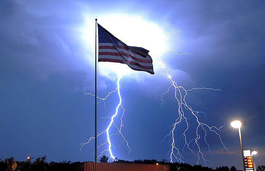 7月1日,美國馬薩諸塞州,遭遇雷擊的美國國旗。