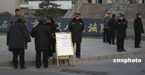圖為法警支起警戒線。中新社發(fā) 翟羽佳 攝