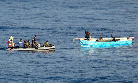 法國總統(tǒng)府當(dāng)日宣布,參加歐盟聯(lián)合打擊海盜“阿塔蘭特”軍事行動的法國海軍當(dāng)天在亞丁灣挫敗一起海盜行動,并抓獲8名海盜。這8名索馬里人分乘兩艘摩托艇試圖強(qiáng)行登上一艘航行在亞丁灣的巴拿馬籍貨輪,法軍的一艘護(hù)衛(wèi)艦成功攔截了這兩艘摩托艇并抓獲了船上8人,繳獲了一批武器彈藥,被捕的索馬里人已經(jīng)移交索馬里當(dāng)局處理。