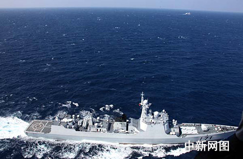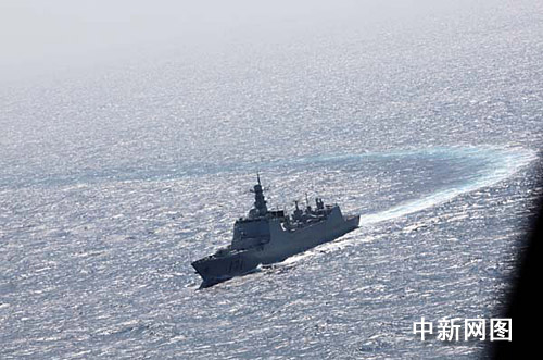 中新網(wǎng)“?凇迸1月2日電 (記者 孫自法)1月2日,中國海軍護(hù)航編隊(duì)航經(jīng)印度洋海域,圖為本網(wǎng)記者隨“?凇迸炁炤d直升機(jī)在空中拍攝“?凇碧枌(dǎo)彈驅(qū)逐艦馳騁于印度洋的雄姿。
