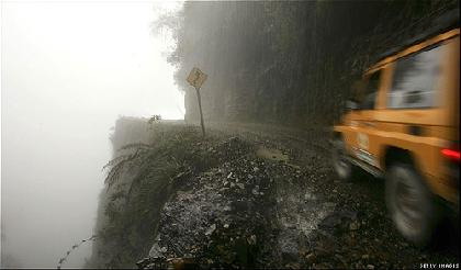 驚險(xiǎn)度:地球上最危險(xiǎn)的路,也被稱為“死亡之路” 。貫通40英里山路,最窄的地方只有10英尺,1000英尺的路是垂直沖入下面的熱帶雨林,而且還沒有護(hù)欄。