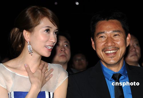 在片中飾演曹操與小喬的張豐毅、林志玲出席發(fā)布會愉快交流。