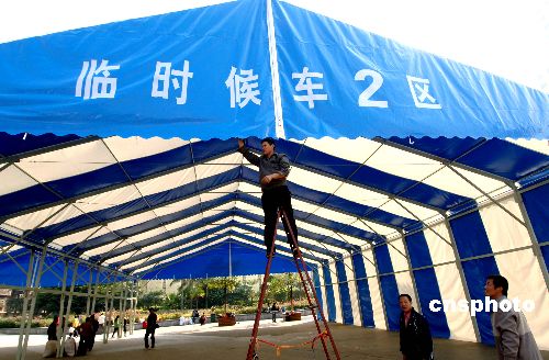 圖:福州火車站搭建臨時候車區(qū)迎春運