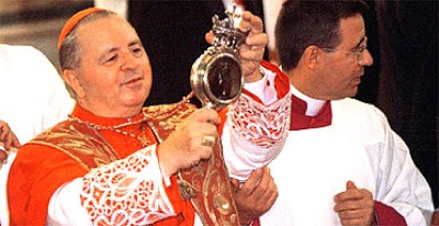 圣亞努阿里烏斯是那不勒斯主教,羅馬天主教的殉教圣人。他曾在拜訪古城普特奧利(就是今天的波佐利)硫磺礦山的執(zhí)事時(shí)被捕下獄。之后他受到嚴(yán)刑拷打,還被丟到波佐利弗拉維亞廣場內(nèi)的獅群中,之后他與同伴在硫質(zhì)噴氣孔火山被斬首,當(dāng)時(shí)是公元前305年。根據(jù)早期的圣徒言行錄記載,那不勒斯主教圣西弗勒斯下令將他的遺體轉(zhuǎn)入那不勒斯地下墓穴。在10世紀(jì)前10年,他的遺體又被被貝內(nèi)文托親王移到貝內(nèi)文托,但他的頭還留在那不勒斯。在神圣羅馬帝國弗雷德里克統(tǒng)治的混亂年代,他的遺體于再次被移動到蒙泰韋爾吉內(nèi)修道院。