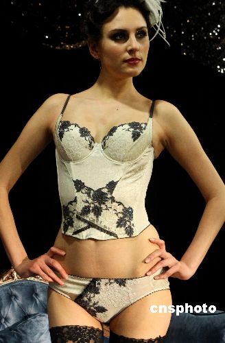 1月6日,國(guó)際某品牌珠寶內(nèi)衣中國(guó)首家旗艦店在北京時(shí)代廣場(chǎng)舉行開(kāi)幕儀式。在開(kāi)幕式上模特展示珠寶內(nèi)衣新款作品。