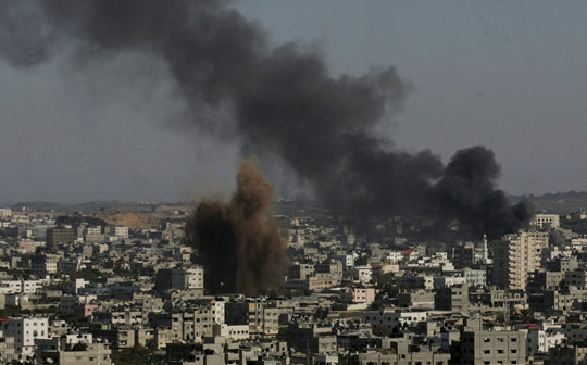 以軍1月6日攻擊加沙城郊,到處煙霧滾滾。以軍當天逼近加沙城人口密集區(qū),并襲擊了一所聯合國學校。