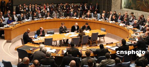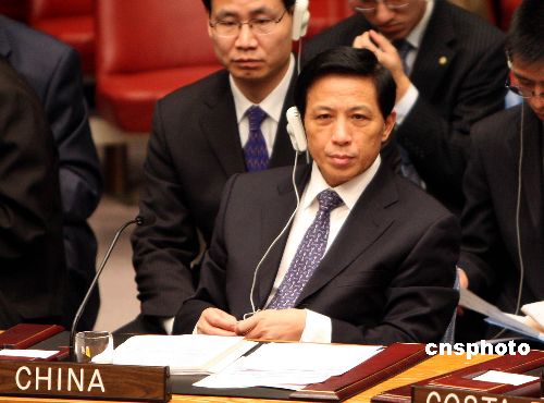 聯(lián)合國(guó)安理會(huì)1月6日就加沙局勢(shì)舉行緊急會(huì)議。中國(guó)常駐聯(lián)合國(guó)代表張業(yè)遂在會(huì)上發(fā)言,呼吁安理會(huì)盡快行動(dòng),通過一項(xiàng)決議,促成以巴立即;稹0ò屠账固姑褡鍣(quán)力機(jī)構(gòu)主席阿巴斯、美國(guó)國(guó)務(wù)卿賴斯、英國(guó)外相米利班德,以及沙特、埃及、約旦、黎巴嫩、摩洛哥、卡塔爾、敘利亞等阿拉伯國(guó)家外長(zhǎng)和安理會(huì)理事國(guó)常駐聯(lián)合國(guó)代表都出席會(huì)議。中新社發(fā) 李靜 攝