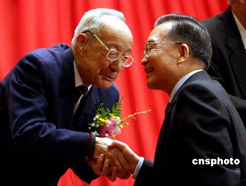 溫家寶總理向科技工作者表示祝賀和敬意。中新社發(fā) 宋吉河 攝