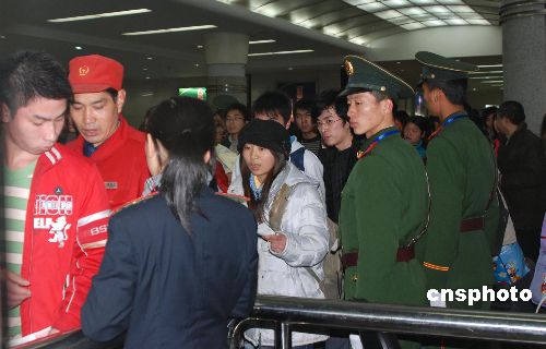 一月九日,武警福建總隊(duì)直屬支隊(duì)派出五十名官兵進(jìn)駐福州火車站,進(jìn)行為期四十天的“春運(yùn)”執(zhí)勤。中新社發(fā) 曾朝群 攝