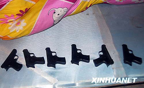 這是在一名制槍嫌疑人家中床單下發(fā)現(xiàn)的仿制手槍。劉潺 攝