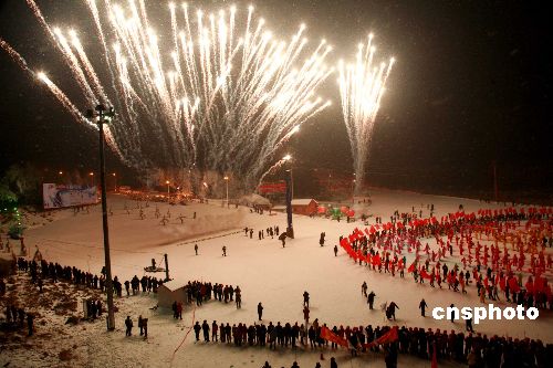 1月11日晚,銀裝素裹、晶瑩秀麗的沈陽棋盤山冰雪大世界歡聲雷動,“2009中國沈陽國際冰雪節(jié)、盛京燈會、關(guān)東廟會”拉開帷幕,這一冬日盛會為期35天。中新社發(fā) 黃金昆 攝
