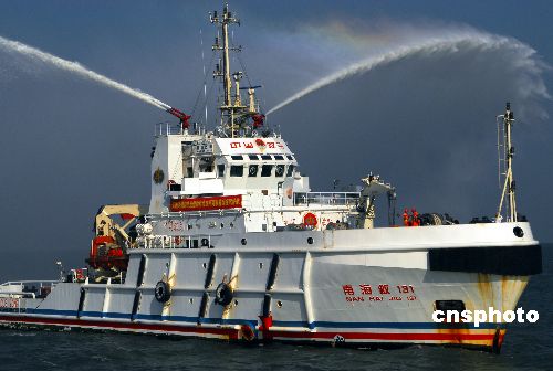 1月11日,中國交通部南海救助局在瓊州海峽開展救助值班船巡航護(hù)航和展示救助技能的演練,并部署隨時(shí)待命的海陸空專業(yè)救助力量,以確保春運(yùn)期間海峽航行安全。中新社發(fā) 善平 攝