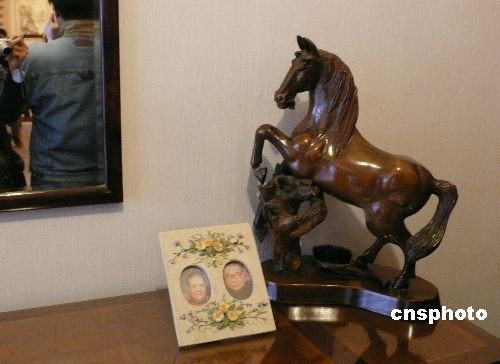 圖為七海寓所門廳內(nèi)擺放的蔣經(jīng)國夫婦相框。中新社發(fā) 路梅 攝