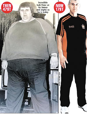 英國(guó)超級(jí)胖司機(jī)為保命減肥380斤:英國(guó)59歲的貨車司機(jī)彼得卡羅爾體重達(dá)到298公斤。肥胖給他的身體帶來(lái)了眾多疾病,醫(yī)生向他發(fā)出警告,稱如果再不減肥就應(yīng)該開(kāi)始為自己準(zhǔn)備葬禮。為了拯救性命,彼得接受了胃旁路減肥手術(shù),接著他到健身館進(jìn)行鍛煉,最后竟成功減掉了190公斤體重。