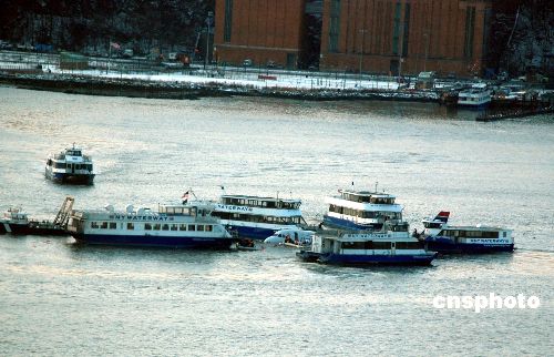 1月15日,在美國(guó)紐約的哈德遜河上,救援人員對(duì)墜河飛機(jī)上的乘客實(shí)施營(yíng)救。中新社發(fā) 魏晞 攝
