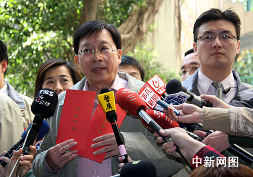 1月18日上午,備受全臺(tái)和外界關(guān)注的消費(fèi)券開(kāi)始在臺(tái)灣各發(fā)放所發(fā)放。圖為今天上午11時(shí),臺(tái)灣行政部門(mén)負(fù)責(zé)人劉兆玄來(lái)到設(shè)于臺(tái)北市金華中學(xué)的消費(fèi)券發(fā)放所領(lǐng)取消費(fèi)券。劉兆玄隨后發(fā)表講話(huà)呼吁臺(tái)灣民眾積極使用消費(fèi)券擴(kuò)大消費(fèi),促進(jìn)內(nèi)需。陳立宇 攝