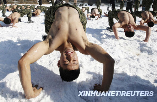 圖:韓國特種兵冰天雪地中進行特訓(xùn)