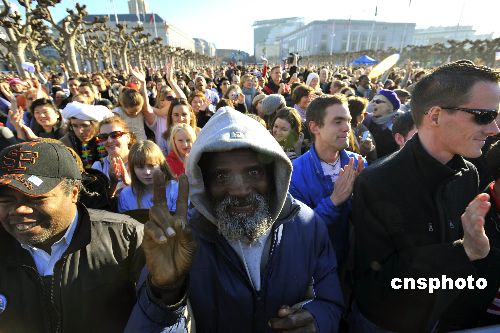 圖:舊金山民眾歡慶奧巴馬就任美國44任總統(tǒng)