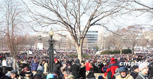 美國數(shù)十萬民眾冒著嚴(yán)寒到現(xiàn)場見證這一歷史性時刻。中新社發(fā) 李靜 攝