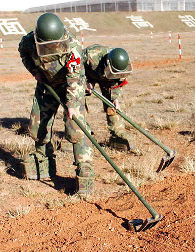 多功能掃雷耙是我掃雷一線人員在實(shí)地掃雷過(guò)程中發(fā)明的。其發(fā)明者從豬八戒的釘耙開(kāi)始琢磨:地雷通常采用壓發(fā)裝置起爆,達(dá)到殺傷目的,而從側(cè)面受力則不會(huì)引爆。如果有類似的釘耙,就能把地雷鉤出!岸喙δ軖呃装摇本褪腔诖税l(fā)明的。該掃雷耙看似簡(jiǎn)單,但它具有排雷簡(jiǎn)單,實(shí)用,輕便,制造成本低等特點(diǎn)。