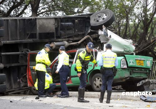 圖:香港落馬洲發(fā)生嚴(yán)重車(chē)禍 六人死亡(2)