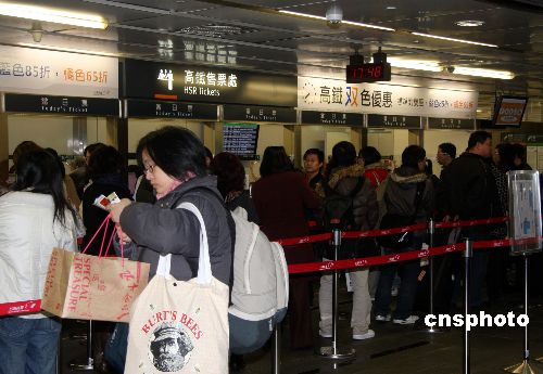 圖:臺灣高鐵購票點(diǎn)出現(xiàn)排隊(duì)購票人龍