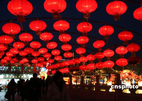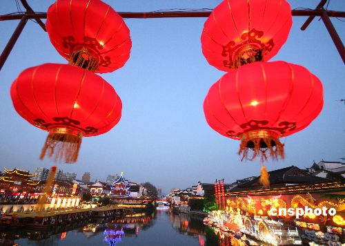 1月23日晚,2009年的中國(guó)南京夫子廟——秦淮河風(fēng)光帶國(guó)際燈會(huì)開始亮燈。本屆燈會(huì)從1月26日正式開始,到2月12日結(jié)束,規(guī)模和數(shù)量都超過往屆。屆時(shí),50組大中型燈組、40萬盞手工扎制的花燈將把夫子廟景區(qū)裝點(diǎn)成燈的世界、花的海洋。