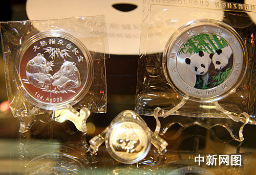 為紀(jì)念大熊貓團(tuán)團(tuán)、圓圓來(lái)臺(tái)與民眾見面。位于臺(tái)北市和平東路三段68——1號(hào)的臺(tái)灣大洋金銀幣有限公司特委請(qǐng)深圳國(guó)寶鑄幣廠和臺(tái)灣“中央鑄幣廠”鑄造大熊貓赴臺(tái)紀(jì)念銀章和大熊貓來(lái)臺(tái)紀(jì)念銀章各一枚。中新社記者 陳立宇 攝