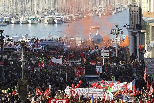 中新網(wǎng)1月30日電 香港大公報(bào)消息,超過(guò)二百萬(wàn)法國(guó)工人星期四舉行全國(guó)大罷工,從巴黎巴士底監(jiān)獄遺址出發(fā)前往市中心,試圖迫使薩科齊總統(tǒng)和商界領(lǐng)袖作出更大努力,在經(jīng)濟(jì)危機(jī)時(shí)期推行政策保護(hù)職位和工資。