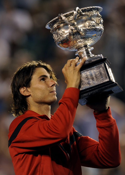 中新網(wǎng)2月1日電 在剛剛結(jié)束的澳網(wǎng)男單決賽中,世界排名第一的頭號(hào)種子、西班牙天王納達(dá)爾與賽會(huì)三屆冠軍得主、世界排名第二的瑞士球王費(fèi)德勒經(jīng)過(guò)近4個(gè)半小時(shí)的比賽,終于以3:2的比分勝出,首次奪得澳網(wǎng)男單冠軍。
